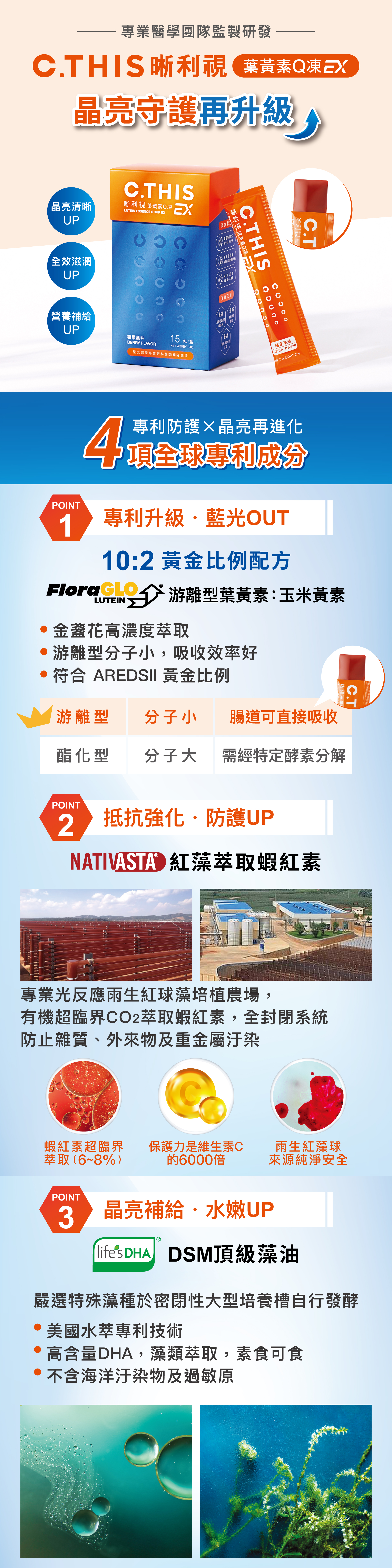 用法/用量 | 6歲以上的小朋友及大人 建議每日攝取一條Q凍; 3-6歲 建議每日攝取半條Q凍,來補足一日所需的葉黃素 |